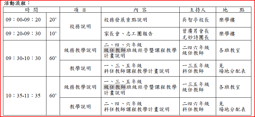敬請家長們撥冗參加,請見附件檔實施計畫、各處室校務報告。