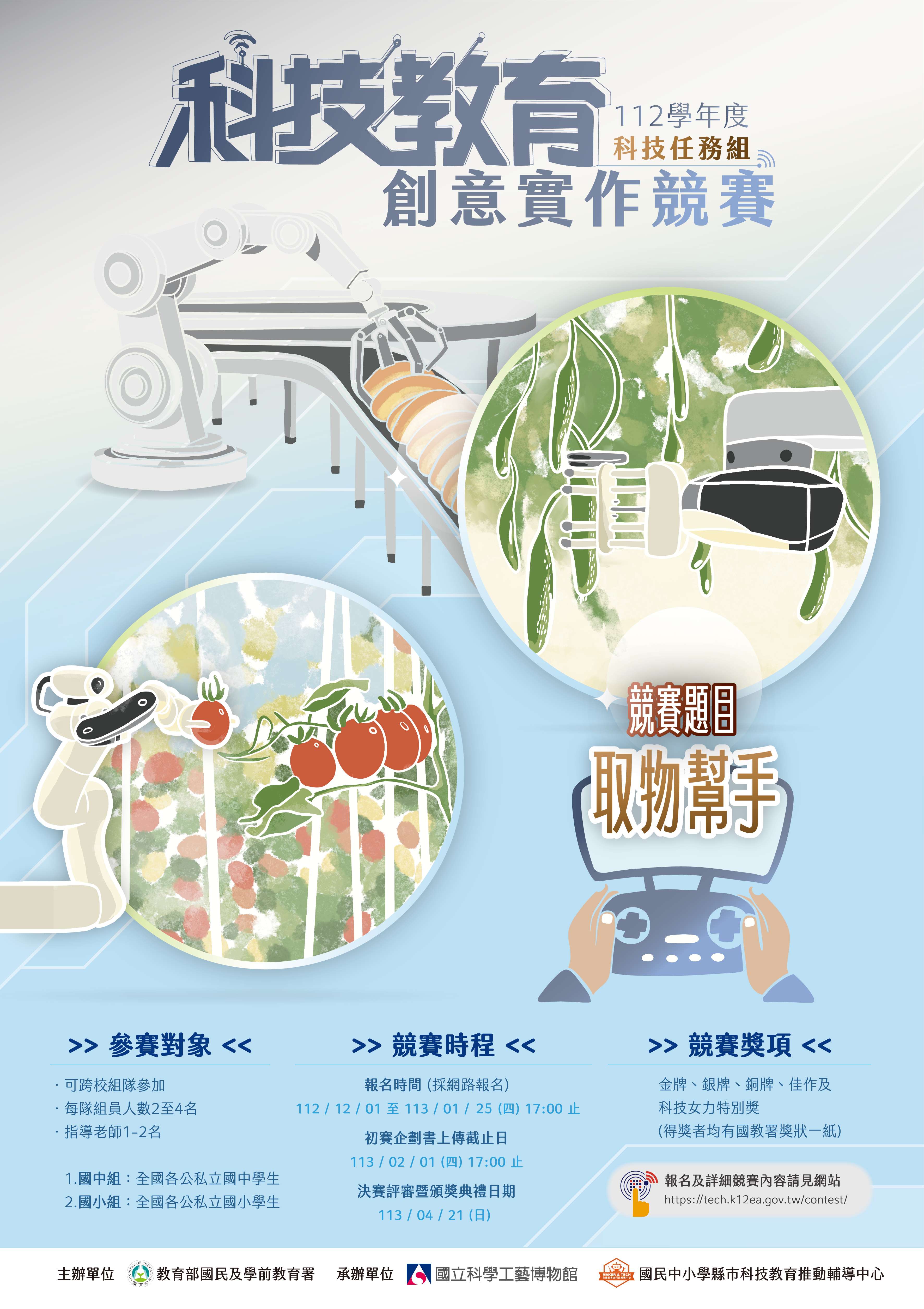 二、旨揭競賽原報名時間至112年1月18(星期四)截止,現延 長至113年1月25日(星期日)下午5時止,競賽資訊詳見競 賽網站(網址:https://tech. k12ea.gov.tw/contest /),請鼓勵所屬師生踴躍報名參加。