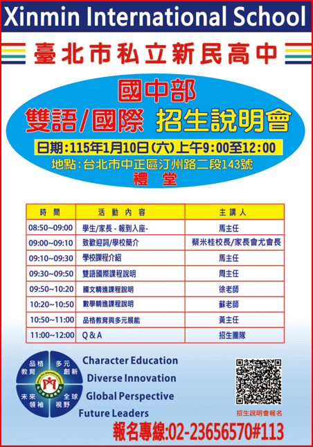 臺北市私立新民高級中等學校「115年學年度國中部學校簡介暨課程說明會」
