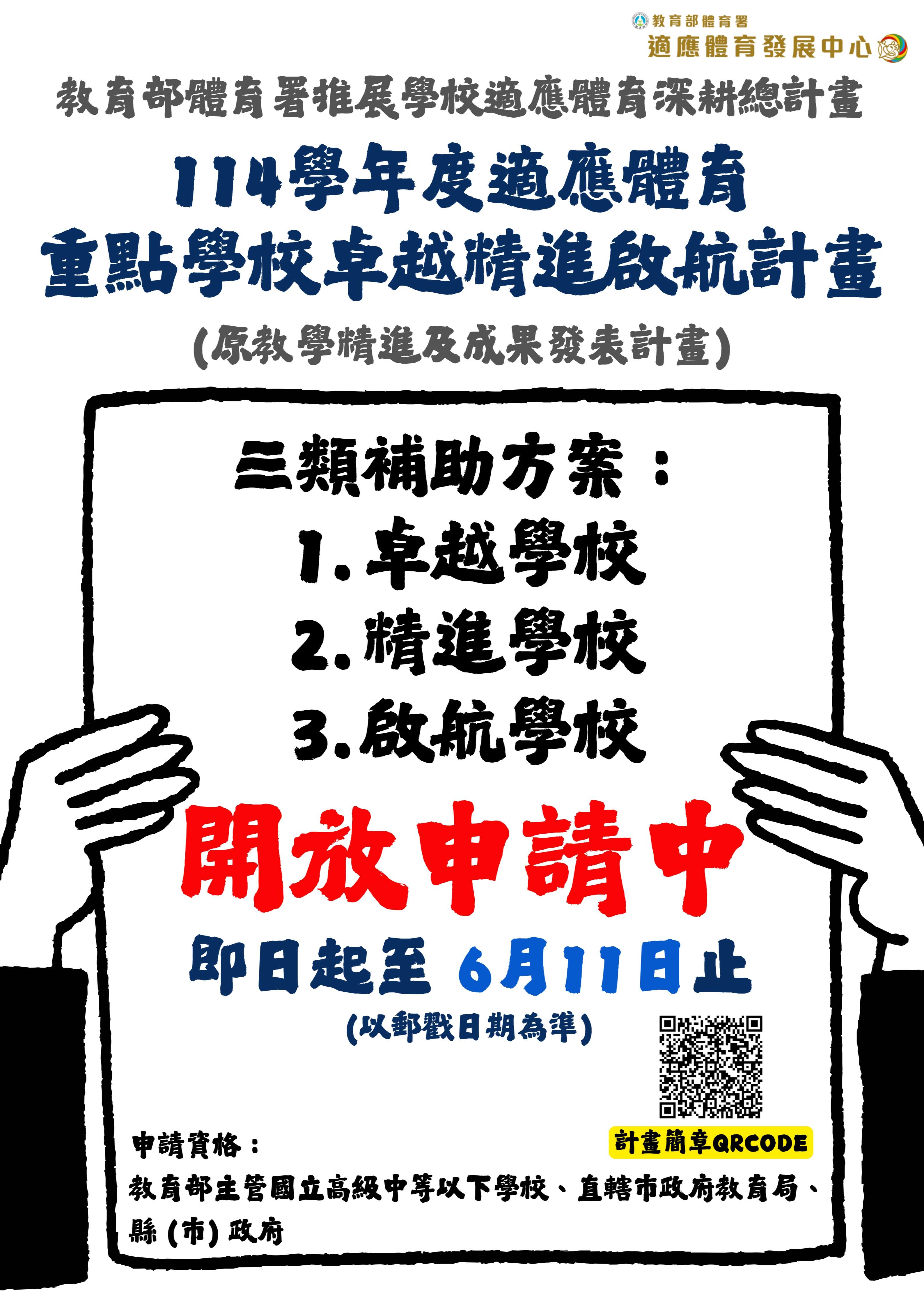 「114學年度適應體育重點學校卓越精進啟航計畫」 簡章及宣傳海報1份